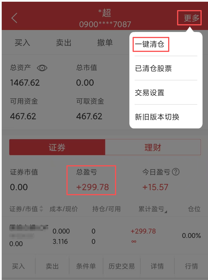 每天早上9:30,如果到账以后就去账户里面把买的东西卖掉,整个转换过程都是自动化的。可以点击一键清仓,就不用一个一个卖掉了。我套利XX一周,赚了300块钱,钱再少,也是钱呀。【套利有风险,这里只讲软件怎么使用,不构成投资建议】以后所有股票都需要打码,而且不留联系方式和连接,要不然会被封号。