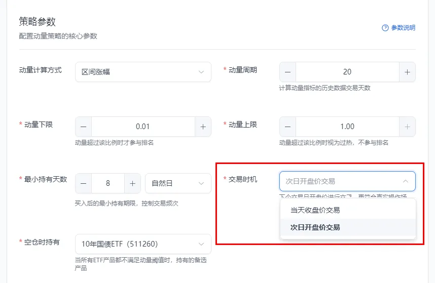 【T日成交】当天成交:当天2:30时候计算动量去成交。你可以在2.30到收盘的时候有30分钟去成交。