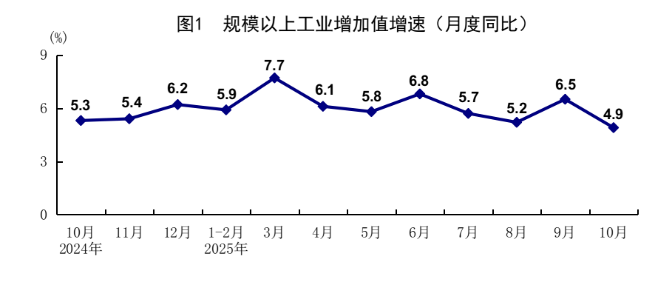 总的来看,10月份国民经济运行总体平稳,转型升级扎实推进,发展新动能继续壮大。也要看到,外部环境不稳定不确定因素较多,国内结构调整压力较大,经济平稳运行面临不少挑战。下阶段,要坚持以新时代中国特色社会主义思想为指导,深入贯彻落实党的二十届四中全会精神,坚持稳中求进工作总基调,全方位扩大国内需求,着力稳就业、稳企业、稳市场、稳预期,积极推动宏观政策持续落地增效,全面深化改革开放,进一步强化创新驱动,促进经济质的有效提升和量的合理增长。