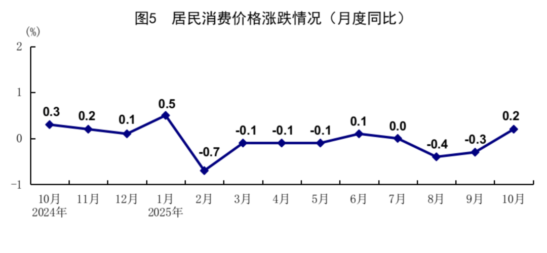 物价回暖:居民消费价格(CPI)从 9 月的下跌 0.3% 变成 10 月上涨 0.2%,终于不跌了;【全靠国庆节】